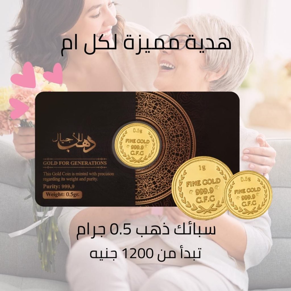 ( gold for generations ) ، لسبائك جديدة من الذهب عيار 24 بأسعار مخفضة و أوزان نصف جرام و واحد جرام بمناسبة اقتراب عيد الأم وبسعر يبدأ من ألف جنيه .